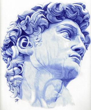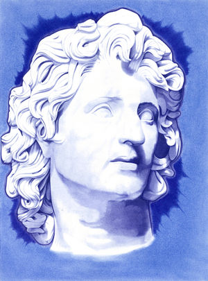 | Zeus - Blue Ink And Pastel - 9 x 12 - White Cardstock Paper - 2014 (Sold) | ||