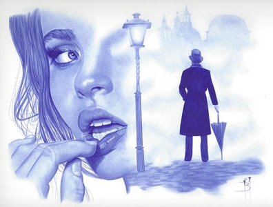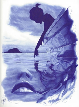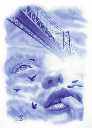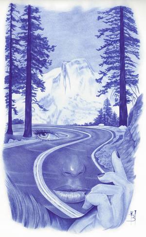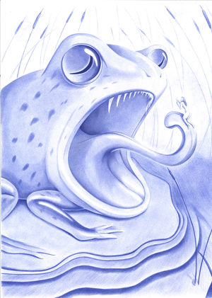 | Toad Eating Woman - Blue Ink - 9.0 x 12.0 - White Heavyweight Paper - 2015 | ||