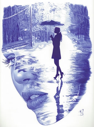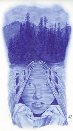 | Womens Face With Mans Back - Blue Ink - 10.0 x 7.5 - White Heavyweight Paper - 2020 | ||