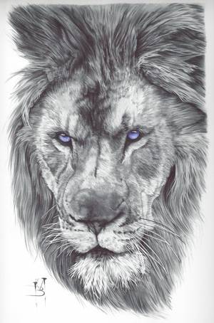 | Lion Head With Blue Eyes - Black And Blue Ink - 8.25 x 11.5 - White Cardstock Paper - 2014 (Sold) | ||