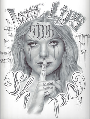 | Loose Lips Female Head - Black Ink - 8.75 x 11.25 - White Heavyweight Paper - 2021 | ||