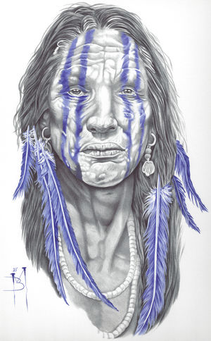 | Native American Male - Blue and Black Ink - 6.75 x 11.0 - White Heavyweight Paper - 2021 | ||