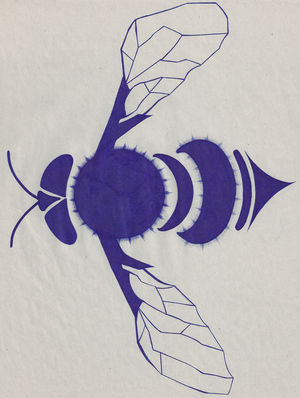 | Bee - Blue Ink - 7.5 x 10.25 - Light Gray Lightweight Paper - 2014 (Sold) | ||