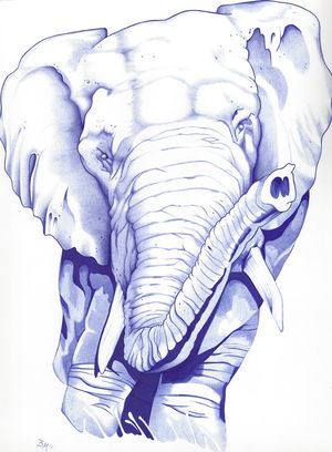 | Elephant Walking - Blue Ink - 8.5 x 11.5 - White Cardstock Paper - 2013 (Sold) | ||