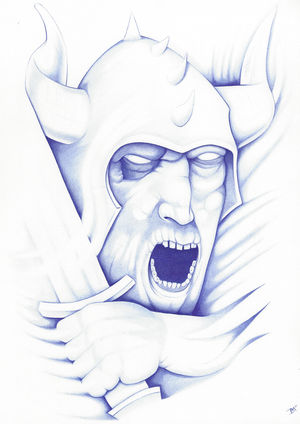 | Ghost Viking Warrior - Blue Ink - 7.5 x 11.25 - White Heavyweight Paper - 2013 (Sold) | ||