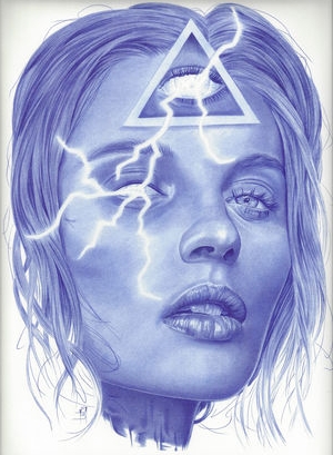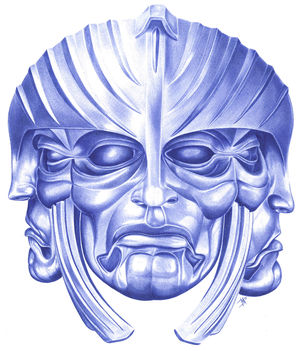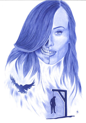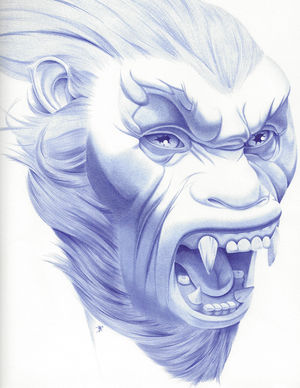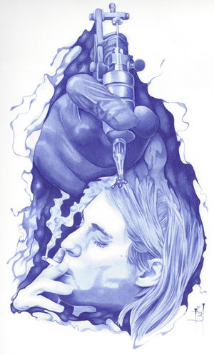 | Title: Evil Reborn - Blue Ink - 7.5 x 11.0 - White Heavyweight Paper - 2015 (Sold) | ||