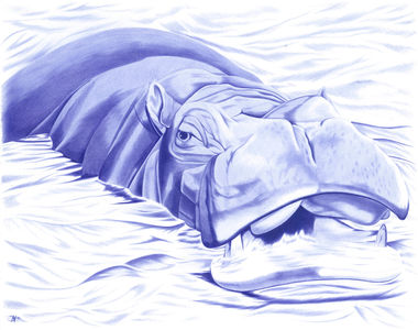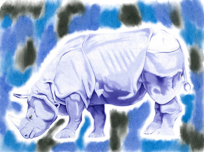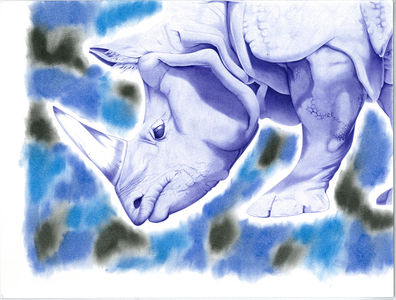 | Rhino - Pastel And Blue Ink - 9 x 12 - White Cardstock Paper - 2014 (Sold) | ||