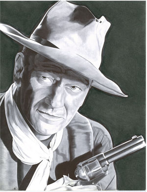 | Title: John 'The Duke' Wayne - Black Ink - 11.0 x 14.0 - White Heavyweight Paper - 2015 (Sold) | ||