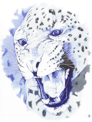 | Leopard Head Growling - Black And Blue Ink - 8 x 10.75 - White Cardstock Paper - 2014 (Sold) | ||