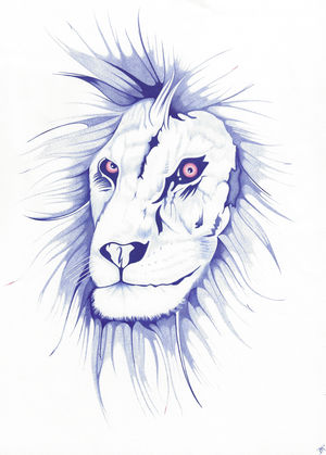 | Lion Head With Red Eyes - Blue And Red Ink - 7.5 x 10.5 - White Heavyweight Paper - 2014 (Sold) | ||