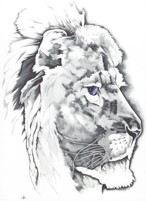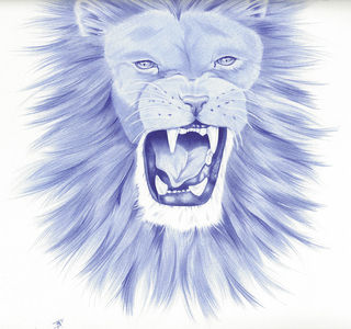 | Lion Head - Black And Blue Ink - 7.5 x 11.25 - White Heavyweight Paper - 2021 | ||