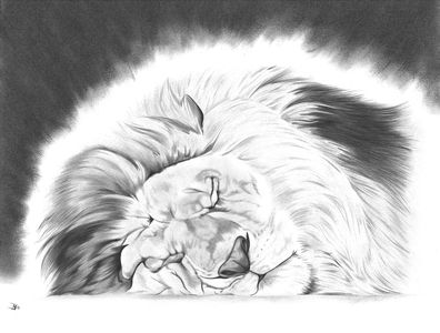 | Lion Sleeping - Black Ink - 8.5 x 11 - White Cardstock Paper - 2014 (Sold) | ||