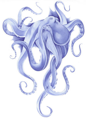 | Octopus - Blue Ink - 7.25 x 10.25 - White Heavyweight Paper - 2016 | ||
