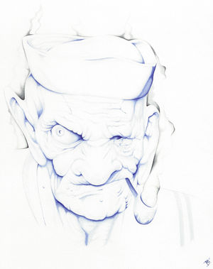 | Old Sailor Missing One Eye - Black And Blue Ink - 7 x 9.5 - White Heavyweight Paper - 2014 (Sold) | ||