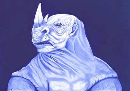 | Title: Rhinoman - Blue Ink - 9.0 x 12.0 - White Cardstock Paper - 2015 | ||