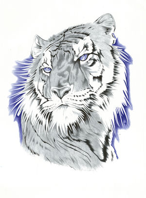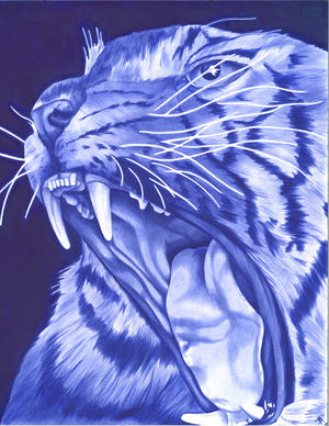 Title: Fierce Tiger - Blue Ink - 9.0 x 11.0 - White Cardstock Paper - 2015 |