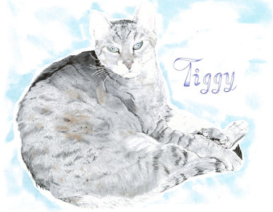 | Title: Tiggy - Pastel Colors And Blue And Black Ink - 11 x 14 - White Cardstock Paper - 2014 | ||