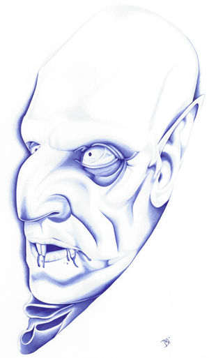 | Vampire - Blue Ink - 6 x 11 - White Cardstock Paper - 2014 (Sold) | ||