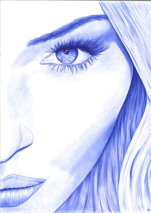 | Womans Face One Side Only - Blue Ink - 9.0 x 12.0 - White Cardstock Paper - 2015 | ||