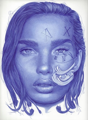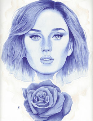 | Title: Katy Perry - Blue Ink And Pastel - 9.0 x 12.0 - White Heavyweight Paper - 2015 (Sold) | ||