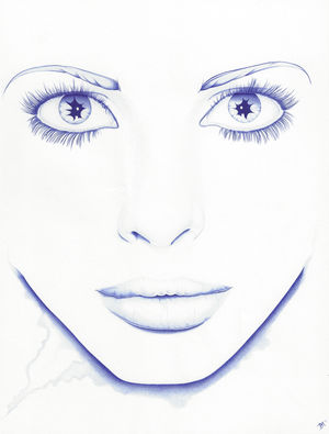 | Womens Face Close Up Star Pupils - Blue Ink - 8 x 9.25 - White Heavyweight Paper - 2013 | ||