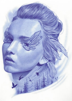 | Young Women With Small Bird - Blue Ink - 6 x 9.5 - White Heavyweight Paper - 2013 (Sold) | ||