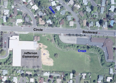 Kristin Erickson, a fifth grade teacher at Jefferson Elementary, along with Patti Warner, a 4-H Wildlife Steward, put together an urban stream enhancement plan that emphasized a hands-on wildlife education site along Dixon Creek as well as served as a community model for urban stream enhancement. The project is located in Corvallis, Oregon and includes the portion of Dixon Creek between Circle and Kings Boulevard behind Jefferson Elementary School.