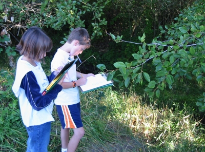 Fifth grade students spent the fall of 2003 learning how to use a tree identification key and identified all of the trees on one side of Dixon Creek. Jerry Heilman, from the Conservation Biology Institute, and parent volunteers helped the students with determining tree type as well as mapping tree locations.