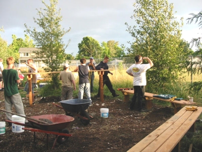 • Summer, 2004 - Many groups helped maintain the wildlife habitat education site along Dixon Creek behind Jefferson this summer. The Corvallis Parks and Recreation Youth Volunteers and the Kiwanis watered and weeded weekly. Scout Troop 163 installed a set of benches. Corvallis Public Works provided water for the new plantings and Corvallis Disposal Company provided two yard recycle bins throughout the summer.