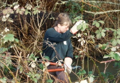 Jefferson students and community volunteers got together to remove invasive plants; mainly Himalayan blackberry and reed canarygrass. Scout Troop 163 provided a lot of people power and Corvallis Disposal Company provided yard waste bins for hauling off the plants.• February 21st, 2004 - Dixon Creek Plant Removal Day